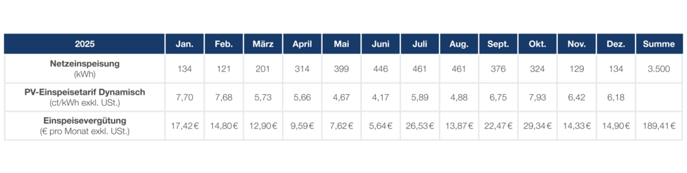 Der PV-Einspeisetarif Dynamisch wird auf Basis der Viertelstundenpreise der europäischen Strombörse EPEX Spot AT berechnet, die in der Day-Ahead-Auktion für die Preiszone AT ermittelt werden, und dabei um einen vertraglich definierten und indexierten Abschlag reduziert. Der Abschlag deckt die Abwicklung und lieferspezifische Kosten ab. Zur Anpassung des Abschlags: Der Index-Ausgangswert für die Wertsicherung auf Basis des österreichischen Verbraucherpreisindex 2015 (VPI 2015) beträgt 139 Punkte (Wert Juli 2025).