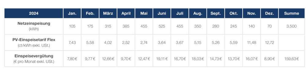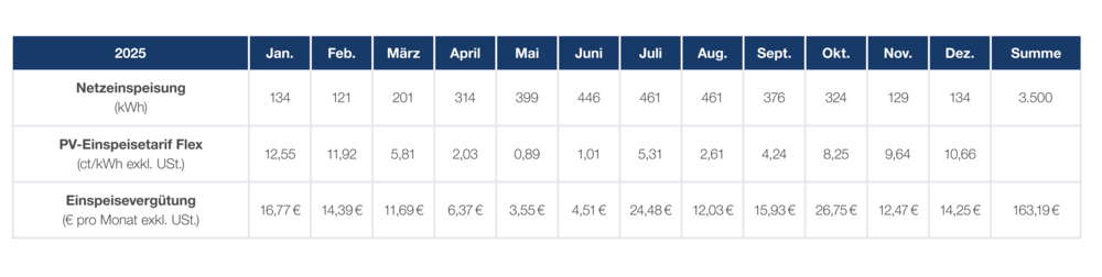 Die Berechnung der Einspeisevergütung erfolgt monatlich und wird rückwirkend veröffentlicht.