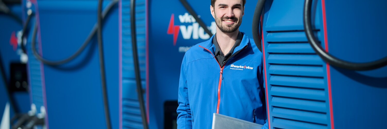 Im Rahmen seines Bachelorstudiums Energiewirtschaft an der Hochschule Biberach ist Bruno Seidel bei einer Exkursion erstmals auf die illwerke vkw aufmerksam geworden: „Anschließend habe ich mich bei der illwerke vkw für ein Praktikum beworben und durfte dann das Team der vkw vlotte für sechs Monate unterstützen“, berichtet Seidel. „Meine Tätigkeiten waren sehr vielseitig. So habe ich Kund:innen das Laden eines E-Autos erklärt oder die neuesten E-Auto-Modelle vorgestellt.“ Auf das Bachelorstudium folgte das Masterstudium Energiewirtschaft – coronabedingt wurden die Lehrveranstaltungen digital abgehalten. Um ein bisschen Abwechslung in den Online- Alltag zu bringen, hat sich Bruno erneut beim Energiedienstleister beworben. Ab August 2020 arbeitete er dann berufsbegleitend in Teilzeit als Werkstudent bei der vkw vlotte.
